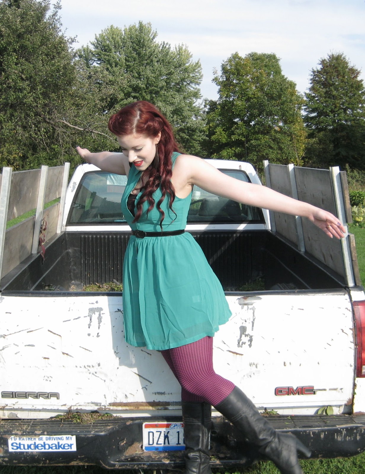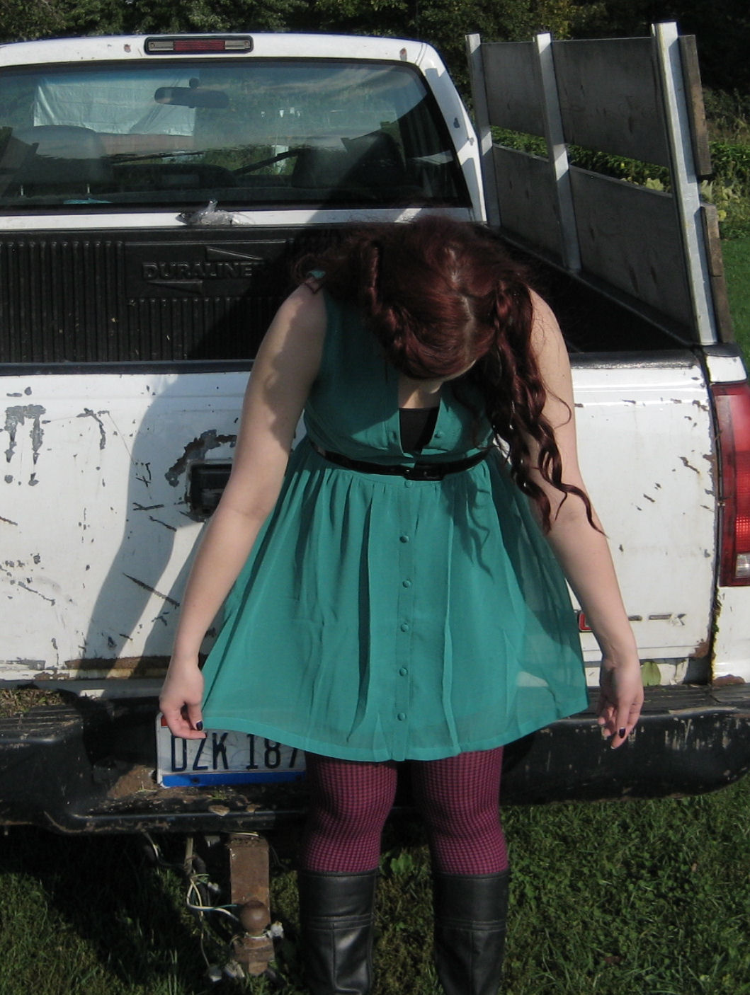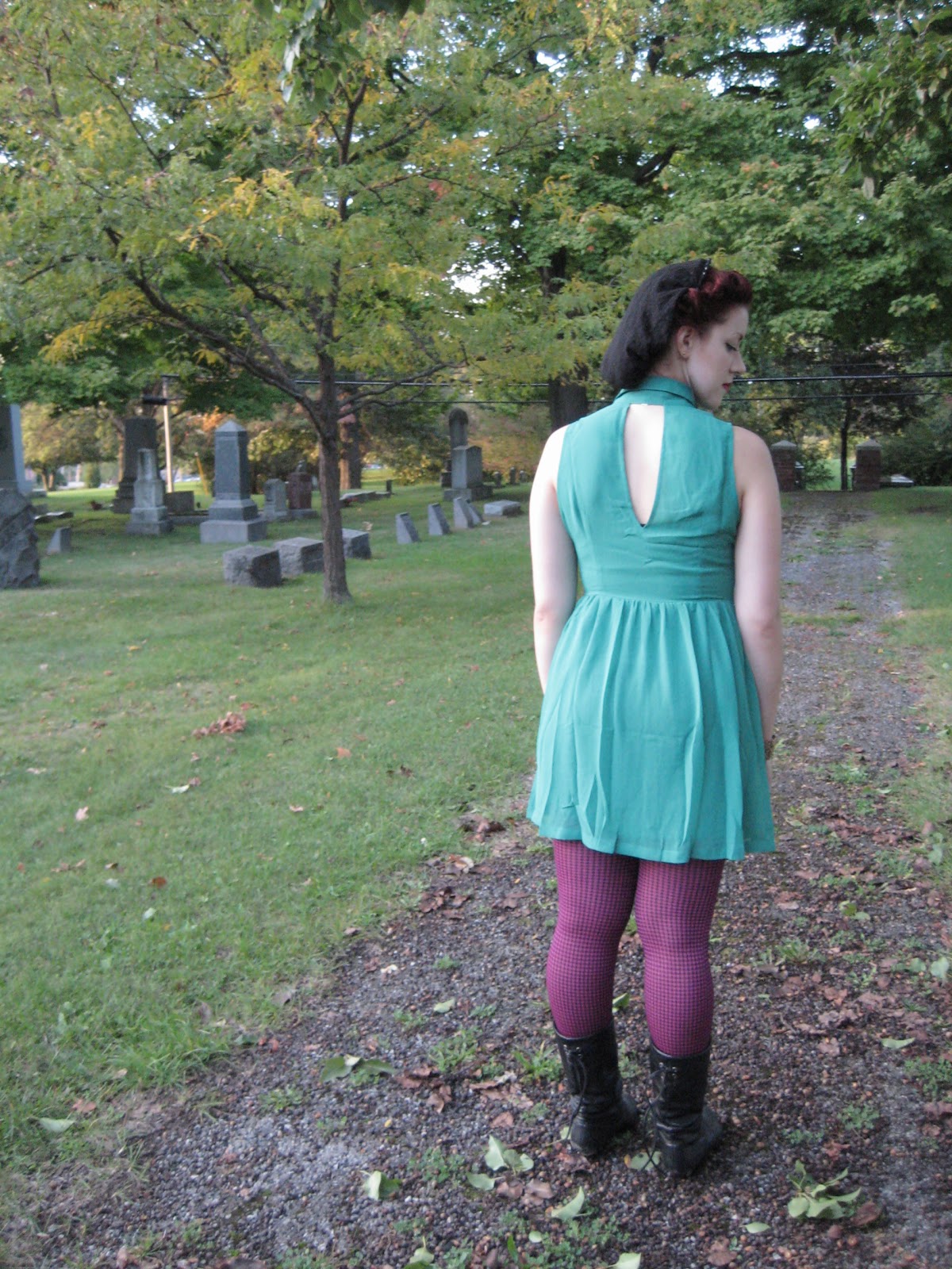 The picture of the back of the dress was taken by my best friend-Natalie-when we took a walk around town. The shoes, in that picture, are the same from the previous post – the ones from Belgium. The snood I put my hair up in was made by my mom, which I might have permanently borrowed, oops!