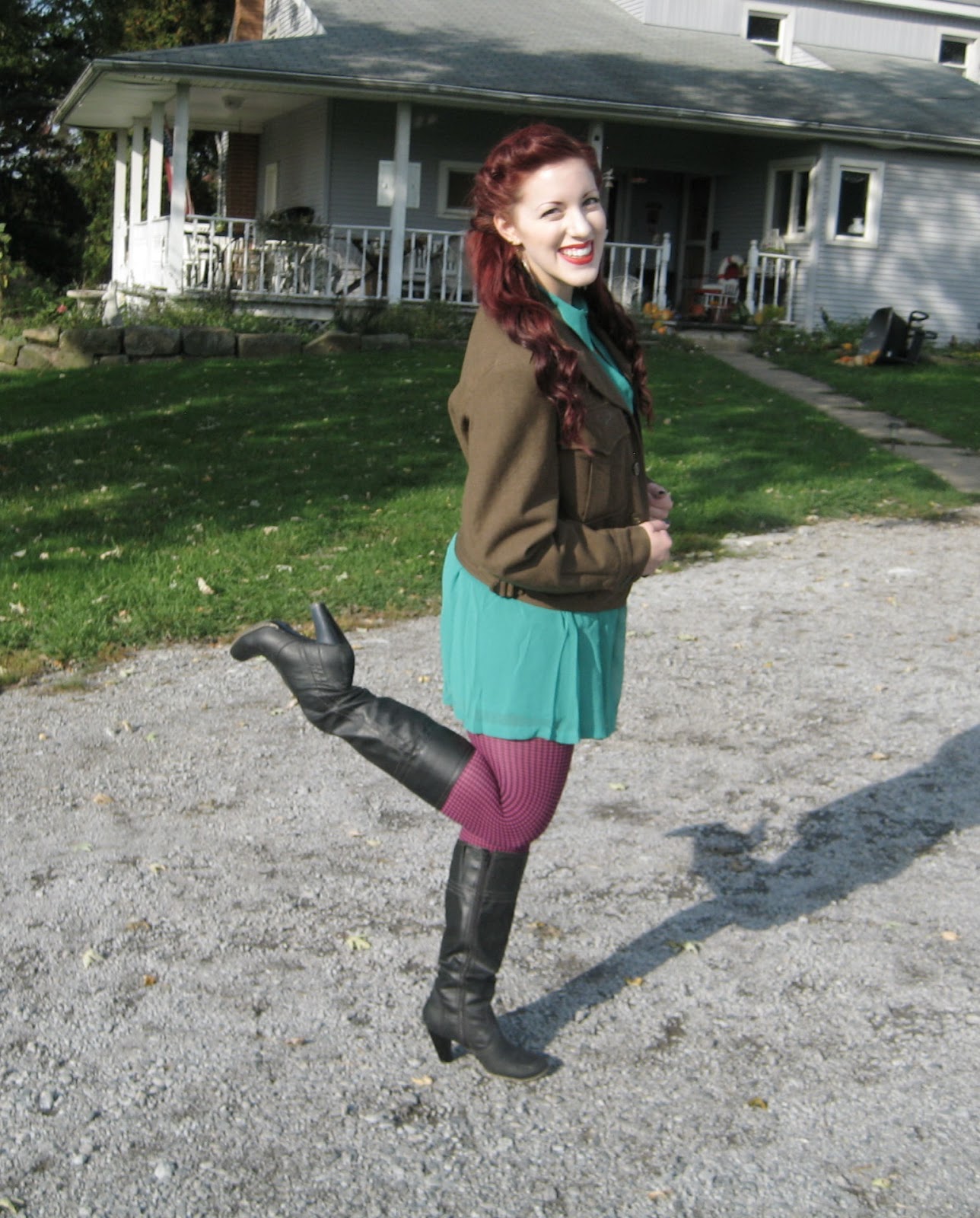 The air-force coat is perhaps my favorite piece of clothing I own. It was a present from my mom. I actually got the whole uniform, however the pants are a little too snug to fit me. The guy had to have a 25 inch waist. When these pictures were taken it was a little too warm for the wool coat, but I felt that it just went too well with the dress to not document it, at least for one picture.