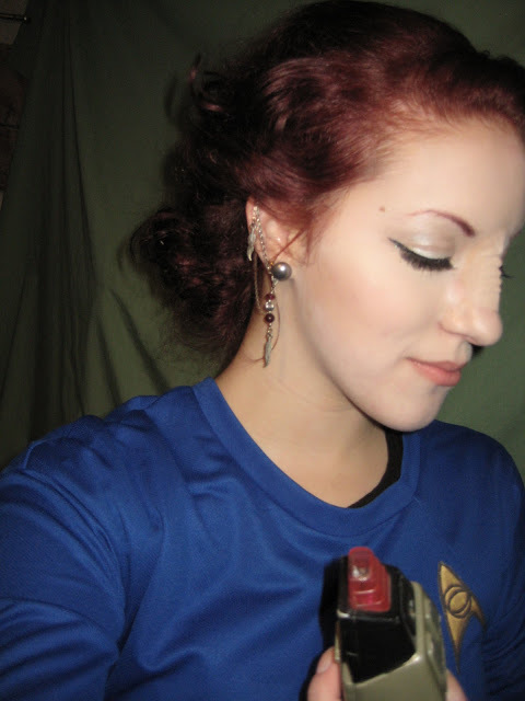 I’ll admit it, I’m kind of a sci-fi geek. I used an XXL shirt from Target and made it into a Star Trek uniform. I used this tutorial. I wore fake eyelashes as I wanted to keep the sixties theme. I’ve always wanted to have a Bajoran nose, but after a while the glue began to itch and made my nose all bright red. I still have some alterations that need to be done to the costume, like making the neckline lower. I hope that I will get a chance to wear it again, specifically to a star trek convention. Okay, I’m a big sci-fi geek. We aren’t even going to get into Doctor Who and all the other obsessions of mine.