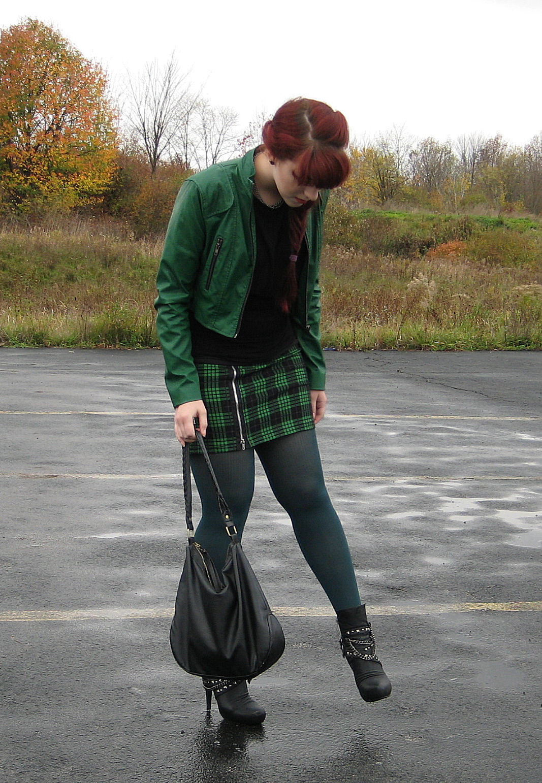 One of the best things to do when you don’t have the right bracelet is to make a bracelet from a necklace or a belt. This outfit was originally just shades of green, however I took stock and realized that perhaps I shouldn’t be so overwhelmingly green like broccoli.