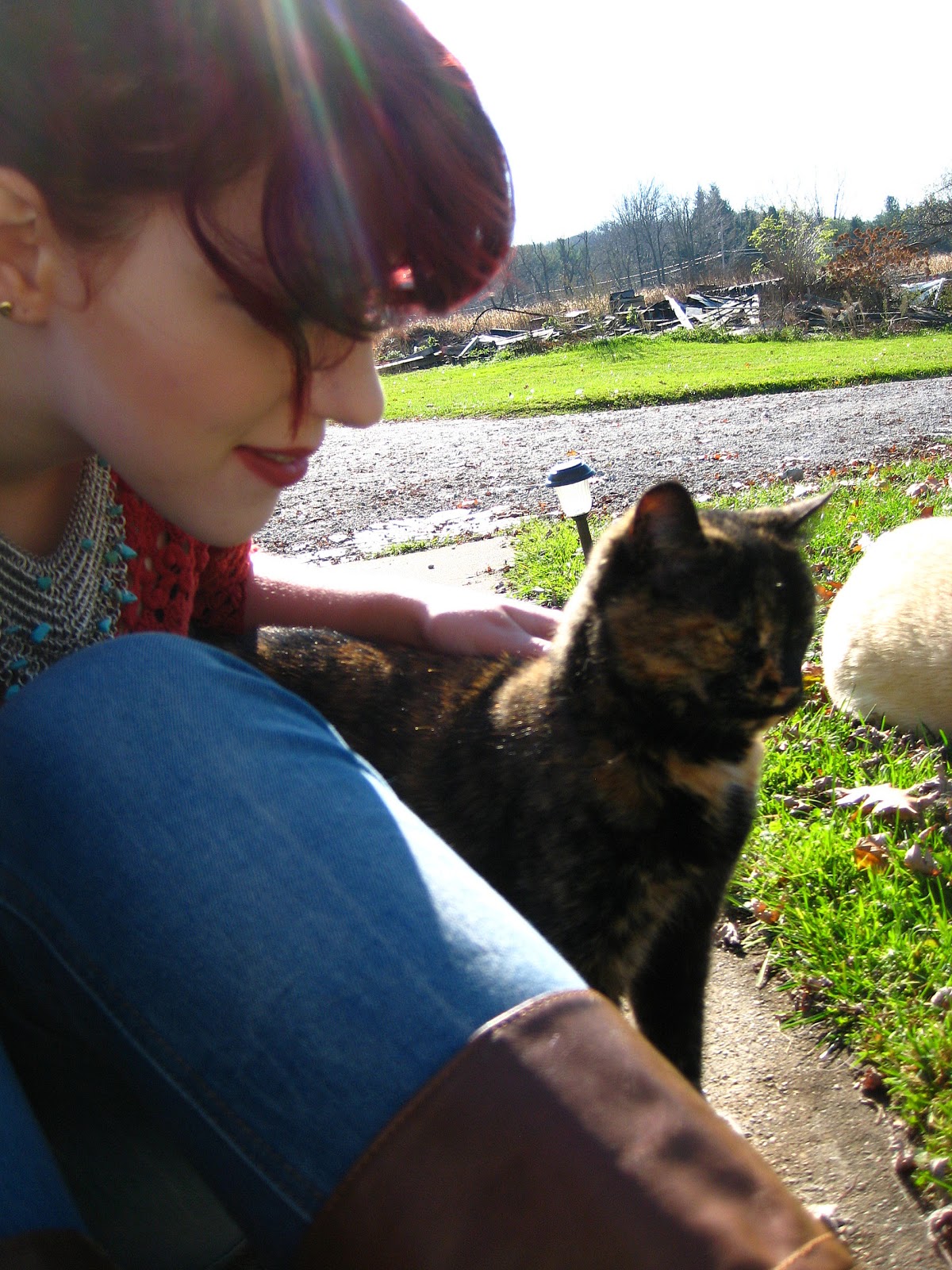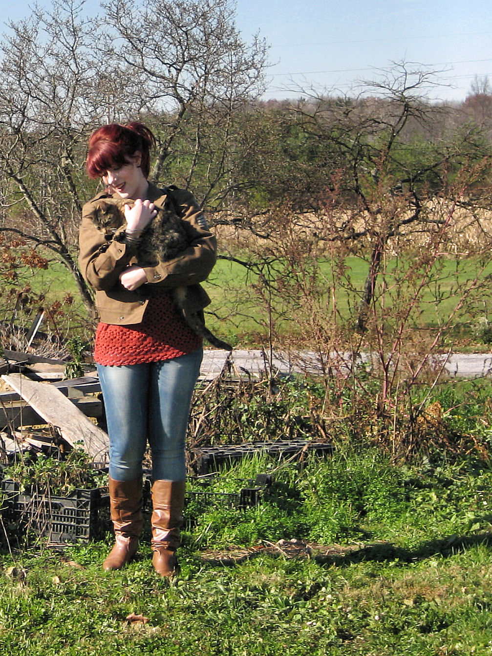 I love over-sized shirts with skinny jeans. Plus, the necklace gives the outfit a kind of fancy tinge. This is one of my favorite lazy day outfits. I tend not to photograph these, as they are lazy days. I’m more comfortable in skirts and tights than jeans, which is a big change from just two years ago. I still like jeans for days where I prefer not to have to think about what I am wearing.