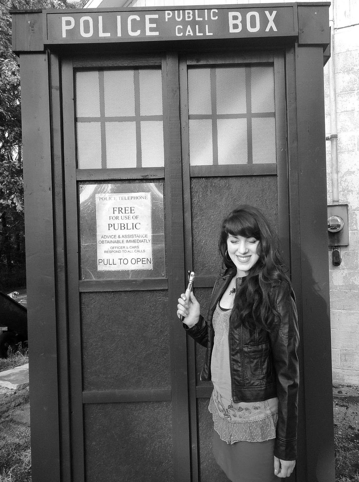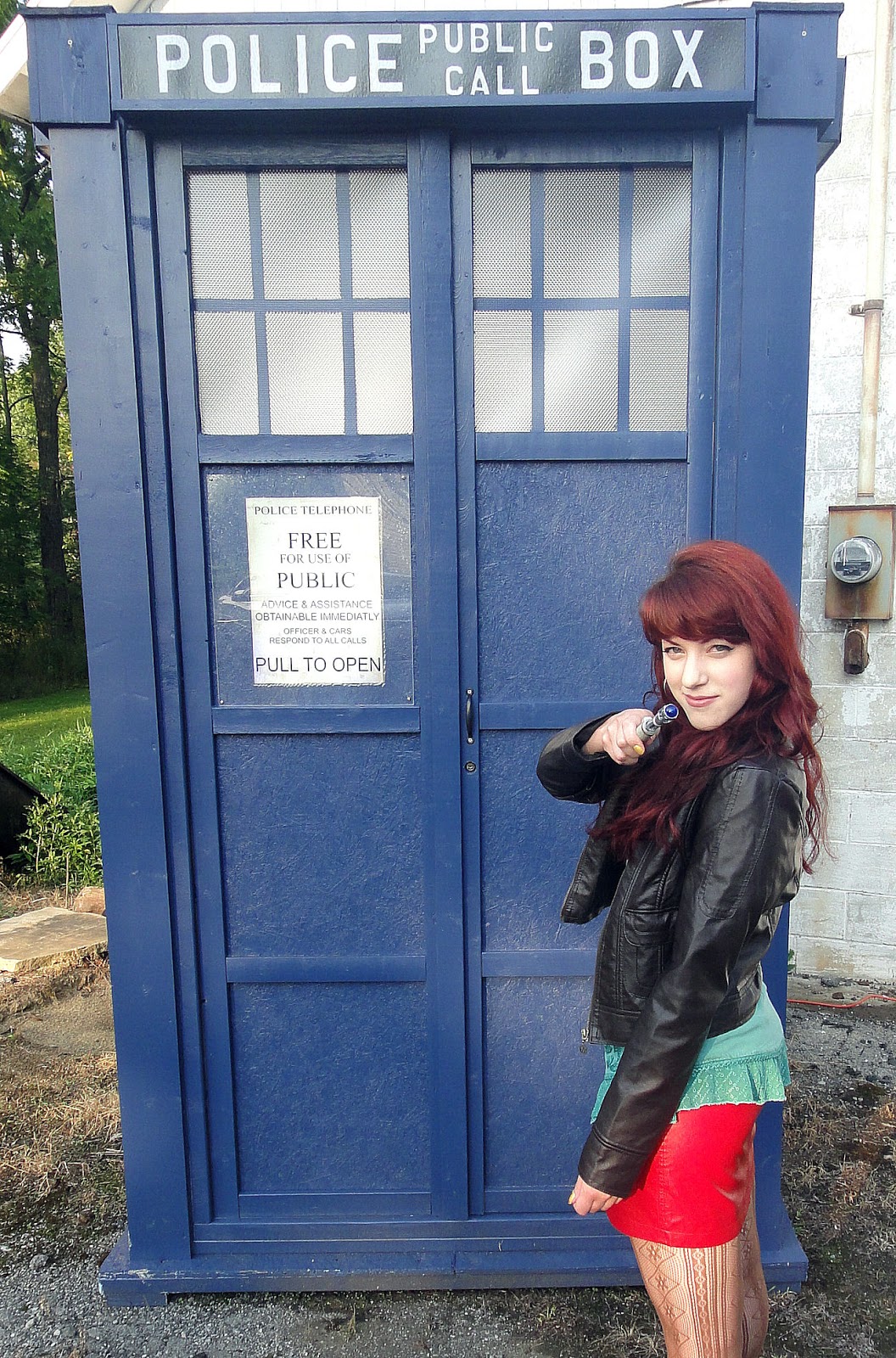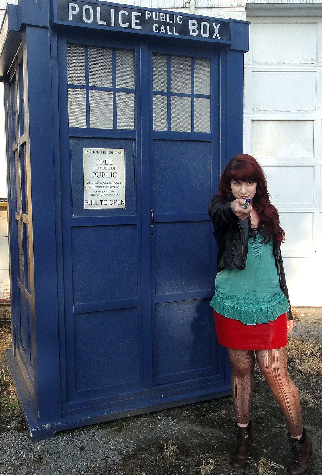The inspiration for the outfit came from one of the doctor’s companions-Amy Pond. Her outfits tends to consist of mini skirts, tights, leather jackets, and boots. The discovery of the TARDIS was good timing, as just a few weeks earlier I had received my sonic screwdriver in the mail. I’m a geek and I admit it happily.