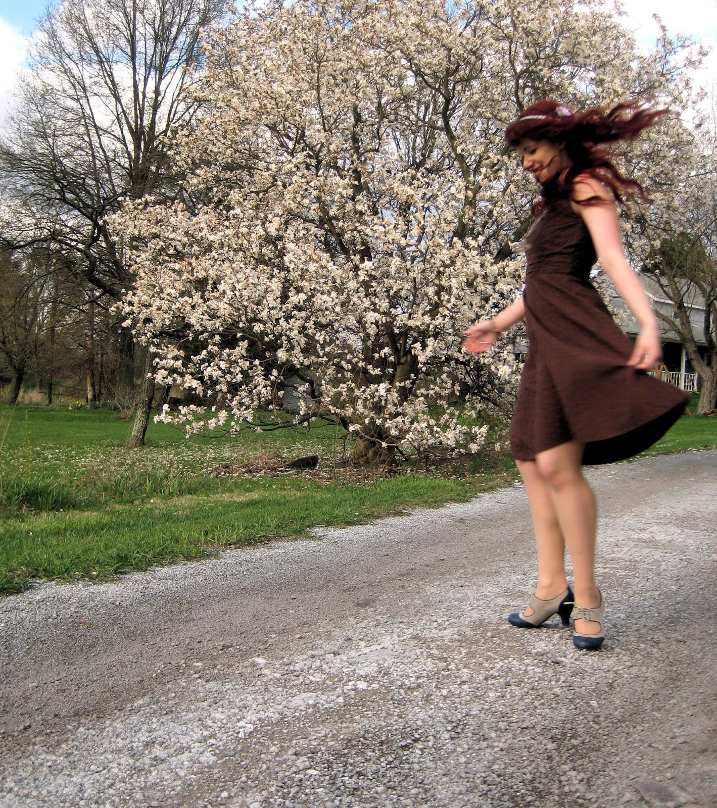 It was actually freezing when these pictures were taken and very windy. I took advantage of the blooming Magnolia tree in our yard for these pictures. The day after these photos were taken it frosted and the blooms were gone. All the same I’m glad I got some pictures before I lost my chance.