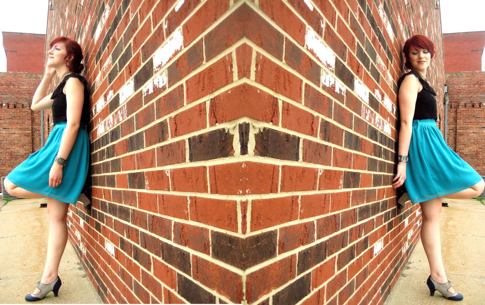 When I discovered this brick wall I was rather excited. It’s nearby and a great contrast for most of my outfits. As for this outfit, maybe it’s a the background, but it just seems to pop and probably will end up being one of my favorite outfits. Right now it’s on show on my mannequin.
