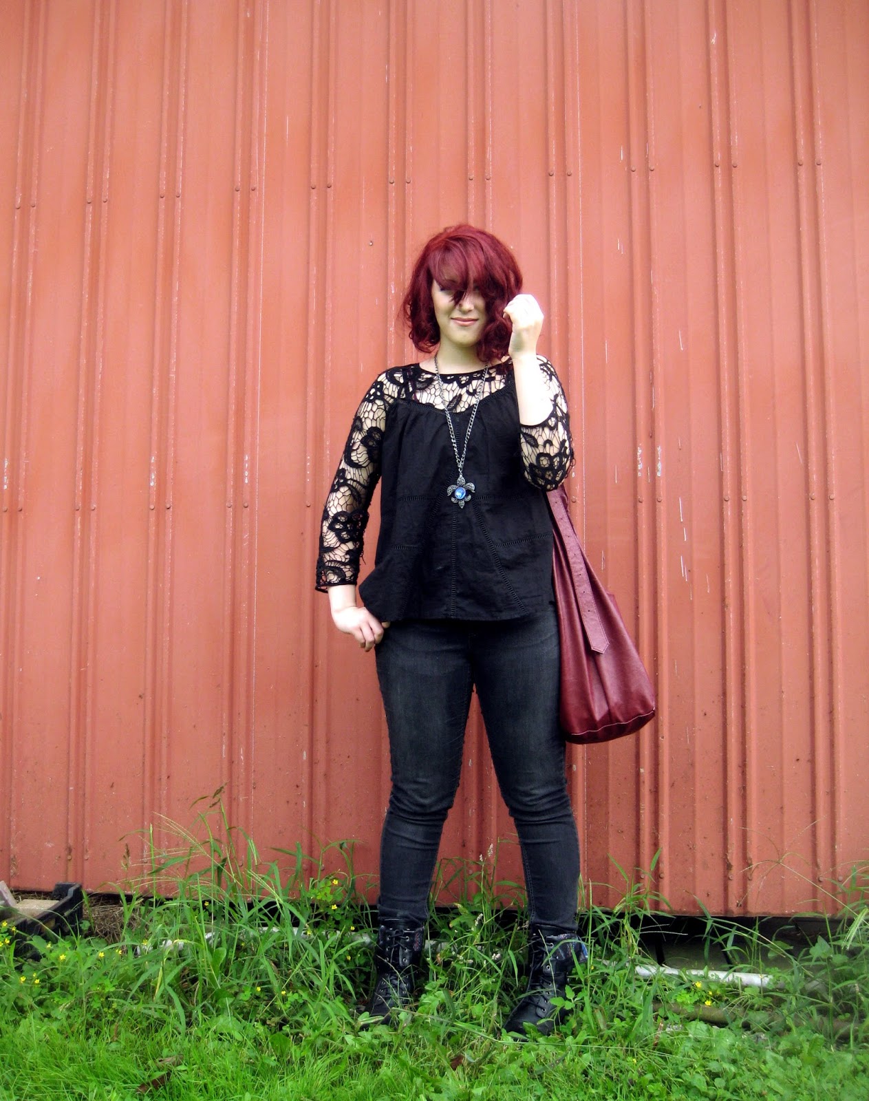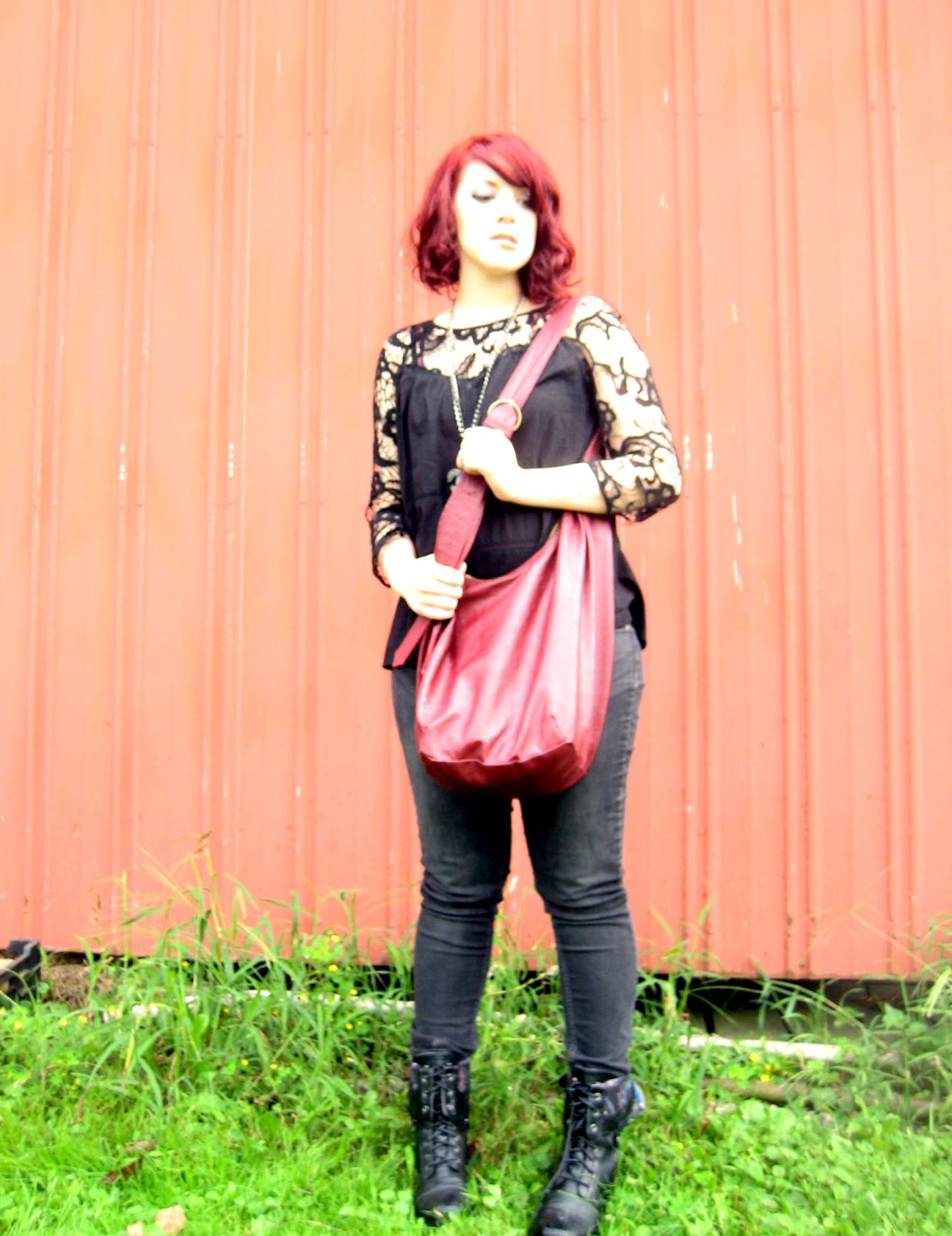 This outfit is a little out of my normal dress code, mainly because there’s jeans in the deal. I’ve always had a soft spot for the edgier look, the black lace and the combat boots just seal the deal. I wore it out for a night one the town: a movie and some coffee, plus a little side action of book shopping. How can anyone resist bookstores? Especially ones with coffee inside.