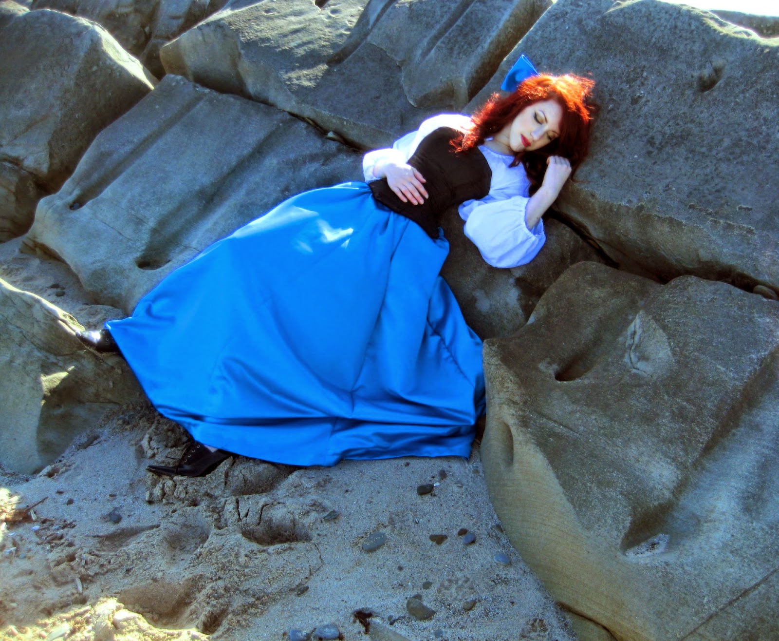 On a freezing morning I dressed up and went to the beach, tugging along a friend who slept huddled in blankets while I took pictures. The experience made me realize that Ariel’s hair would be nothing like suggested and my hair and beach weather don’t get along so well. But, now you know: I’m a total sucker for Ariel and Halloween.