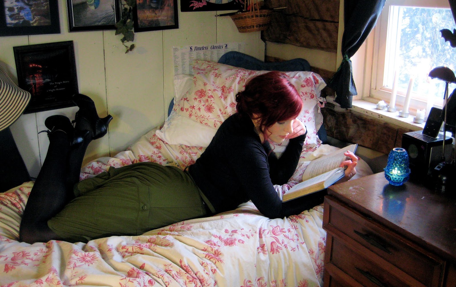 Very rarely have I tried photo taking inside, just because of lighting issues, but that winter day was perfect for it. After my usual outside setting, I sneaked back inside and got to reveal a little corner of my room, and one of my favorite reading spots. Everyone should have at least two.