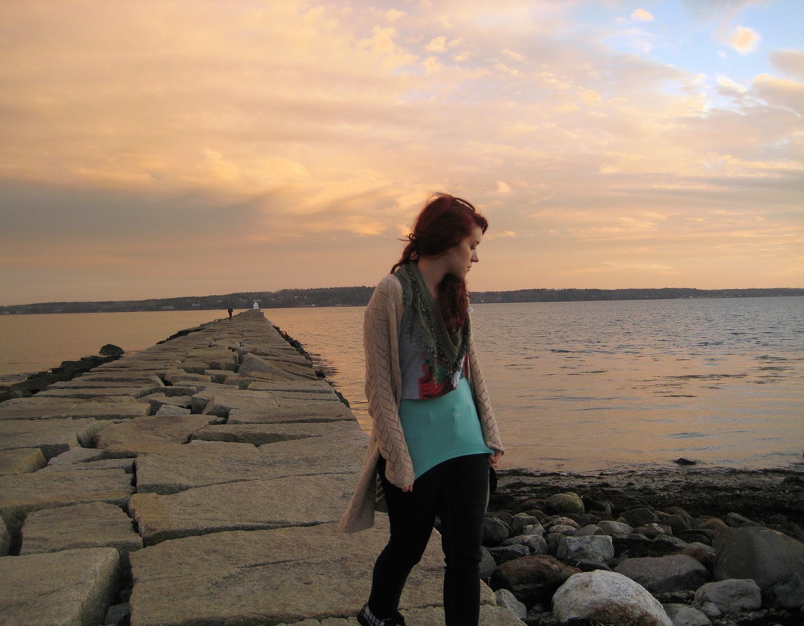 I always carry my tripod with me – I’ve mentioned this before. It just stays in my car should I ever need it. But it’s become too rare an event – these spur of the moment outfit photo shoots. On this particular day I couldn’t resist the beauty of the sunset as my background. So, even though I was wearing laundry day clothes I took to it. From the ocean’s pink to the lighthouse walkway, everything was so perfect I’m glad that such an evening was documented.