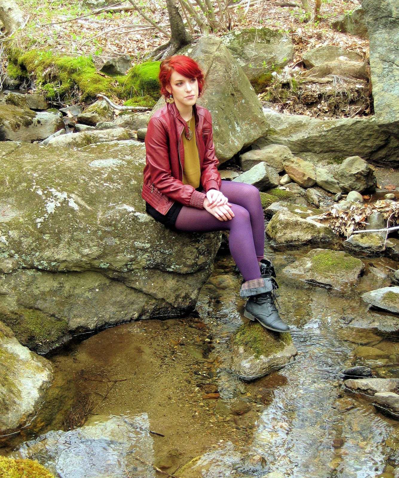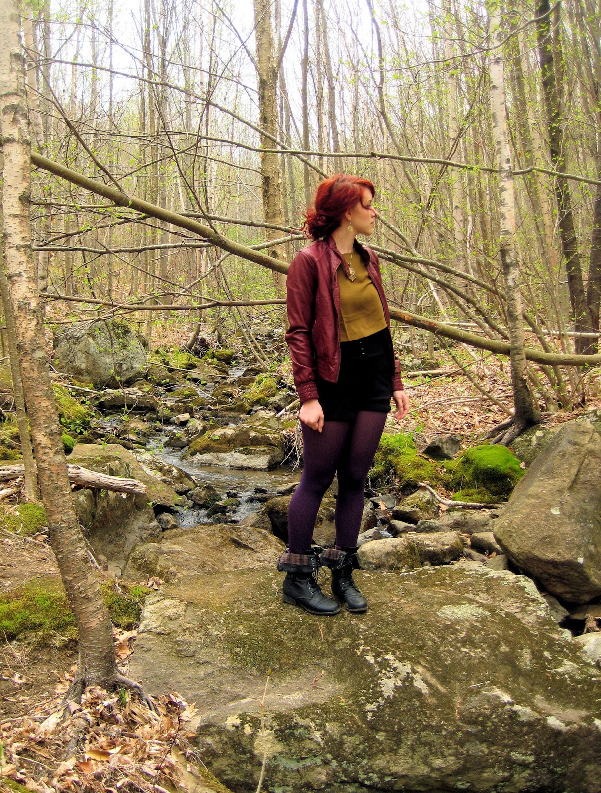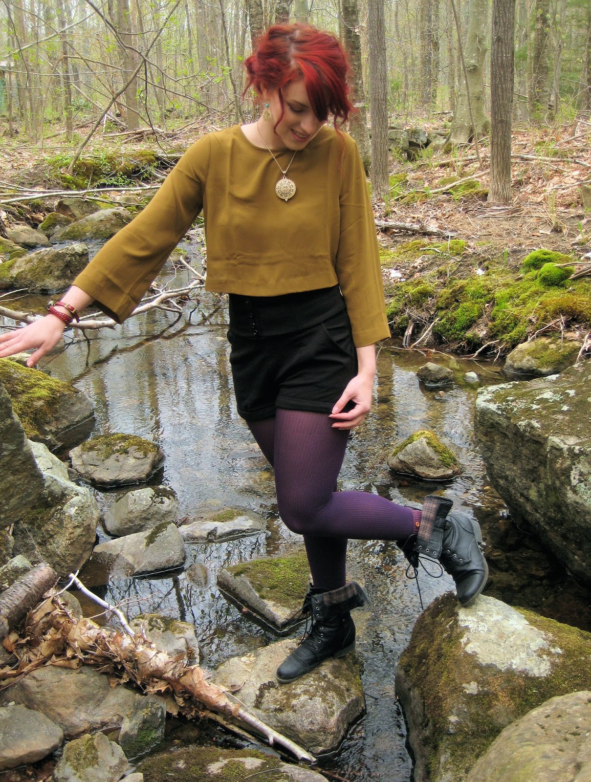 I love this outfit. It composes many features that I have long loved: high waists, warm colors, and combat boots. Of course, I found a great spot to take the pictures as well because my outfit photos must have a beautiful background.