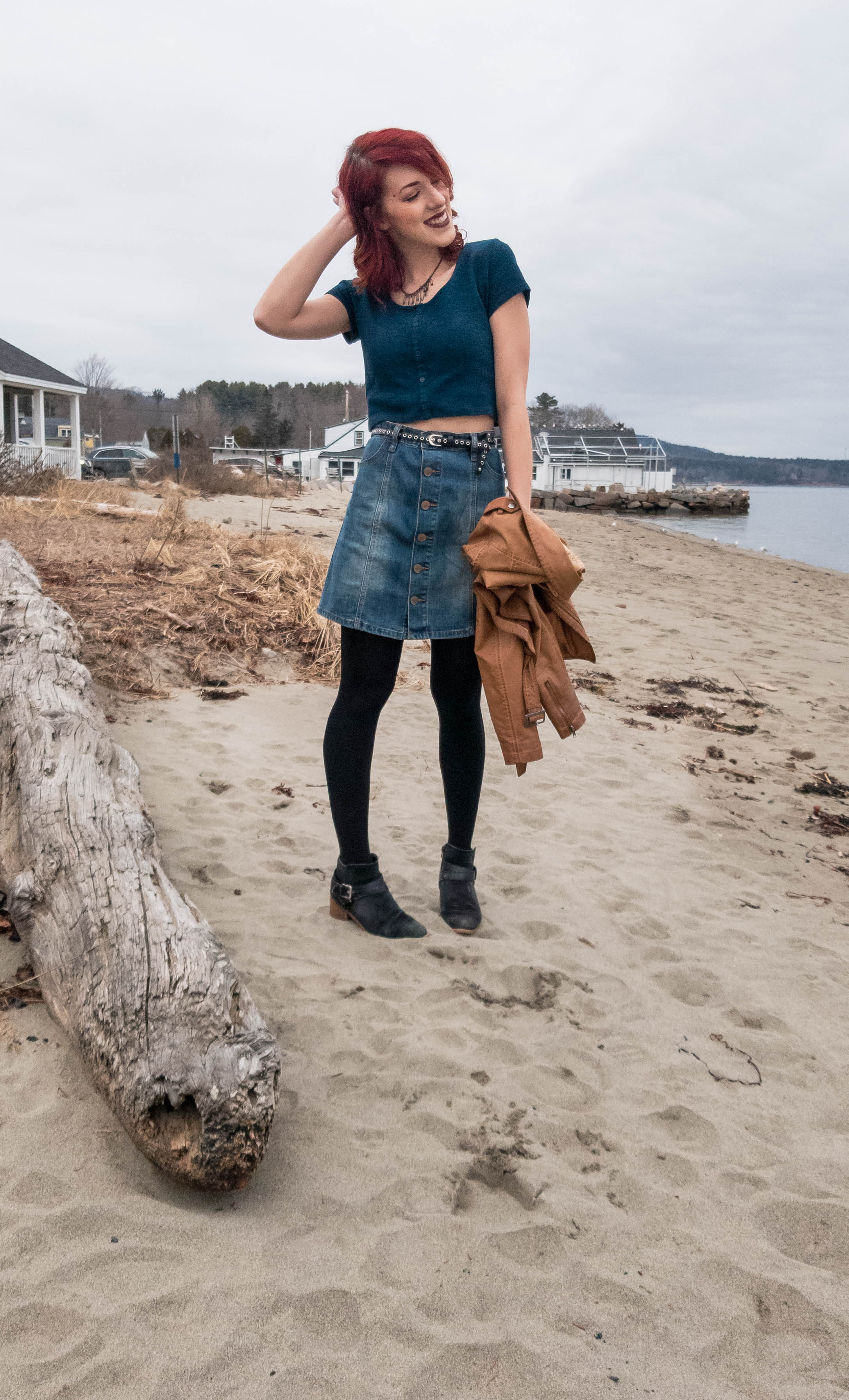 Outfit Details: Jacket (TJmaxx) Skirt (Forever21) Shirt (Target) Boots (White Mountain) Scarf (Stradivarius) Necklace (Claire’s)