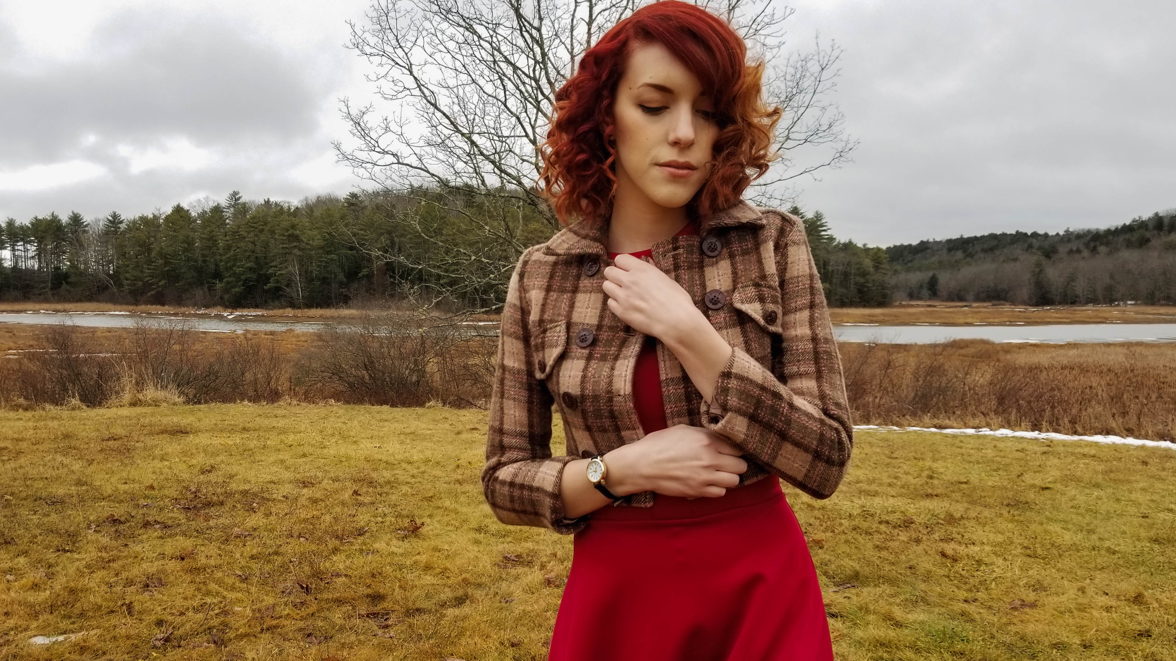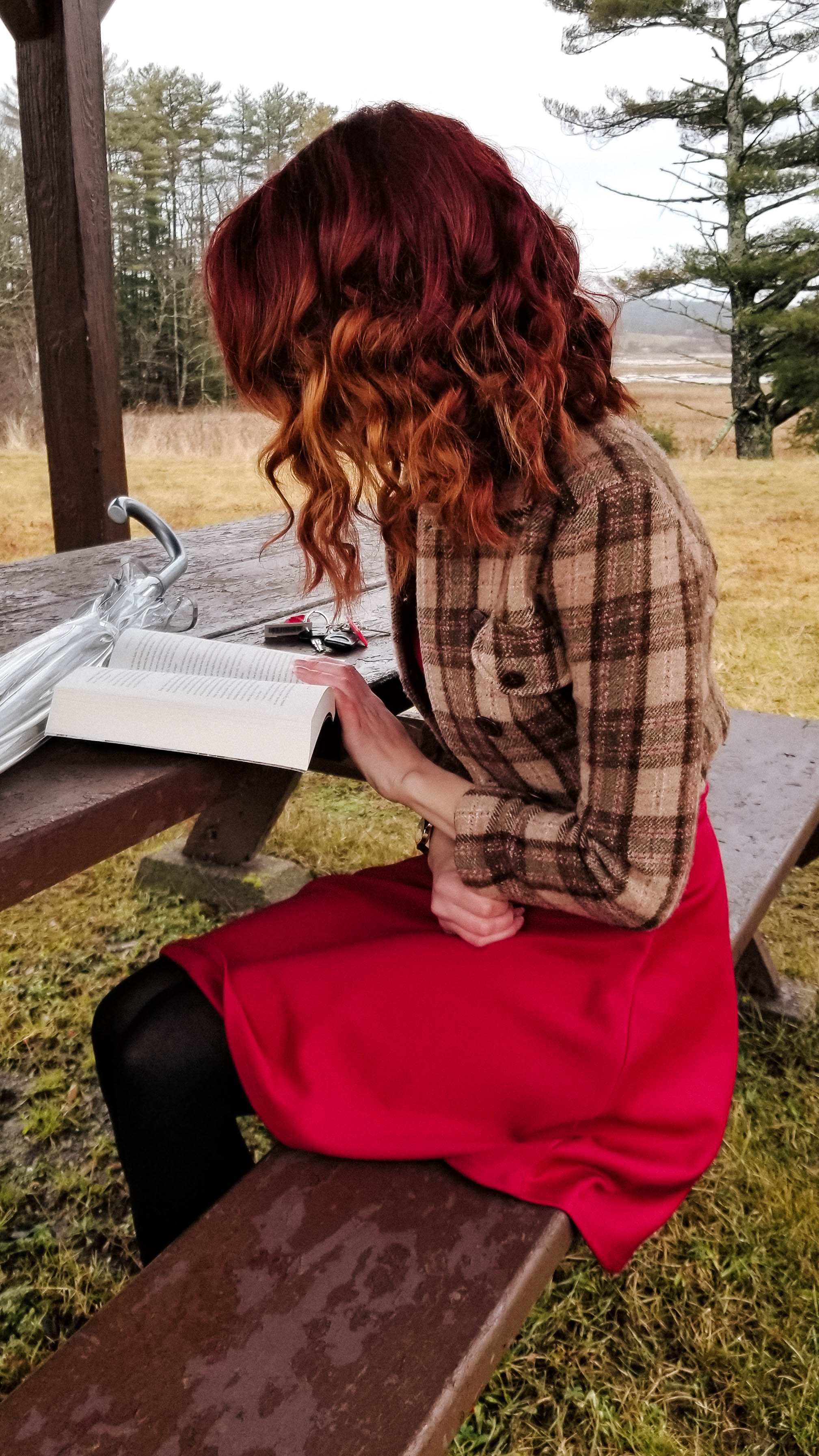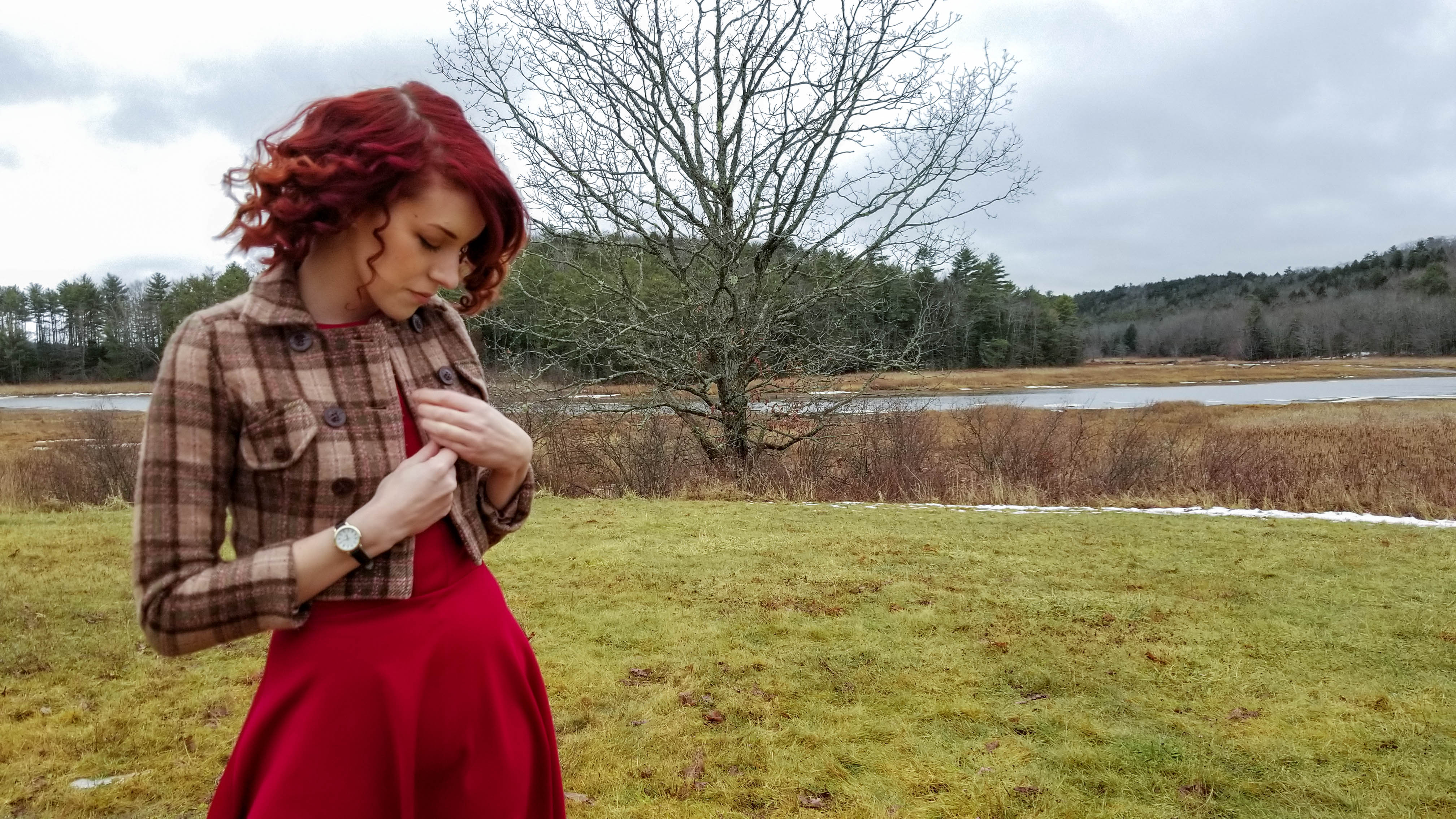 This outfit is actually on Matilda (my mannequin) right now. I don’t wear red often, there’s an old piece of fashion advice that says redheads shouldn’t wear red. I’m not listening to it anymore. In the middle of a grey and dreary winter day, a little bit of red brightened my day. Plus, have I mentioned my love of twirling in skirts? My Instagram stories are full of dress twirls.