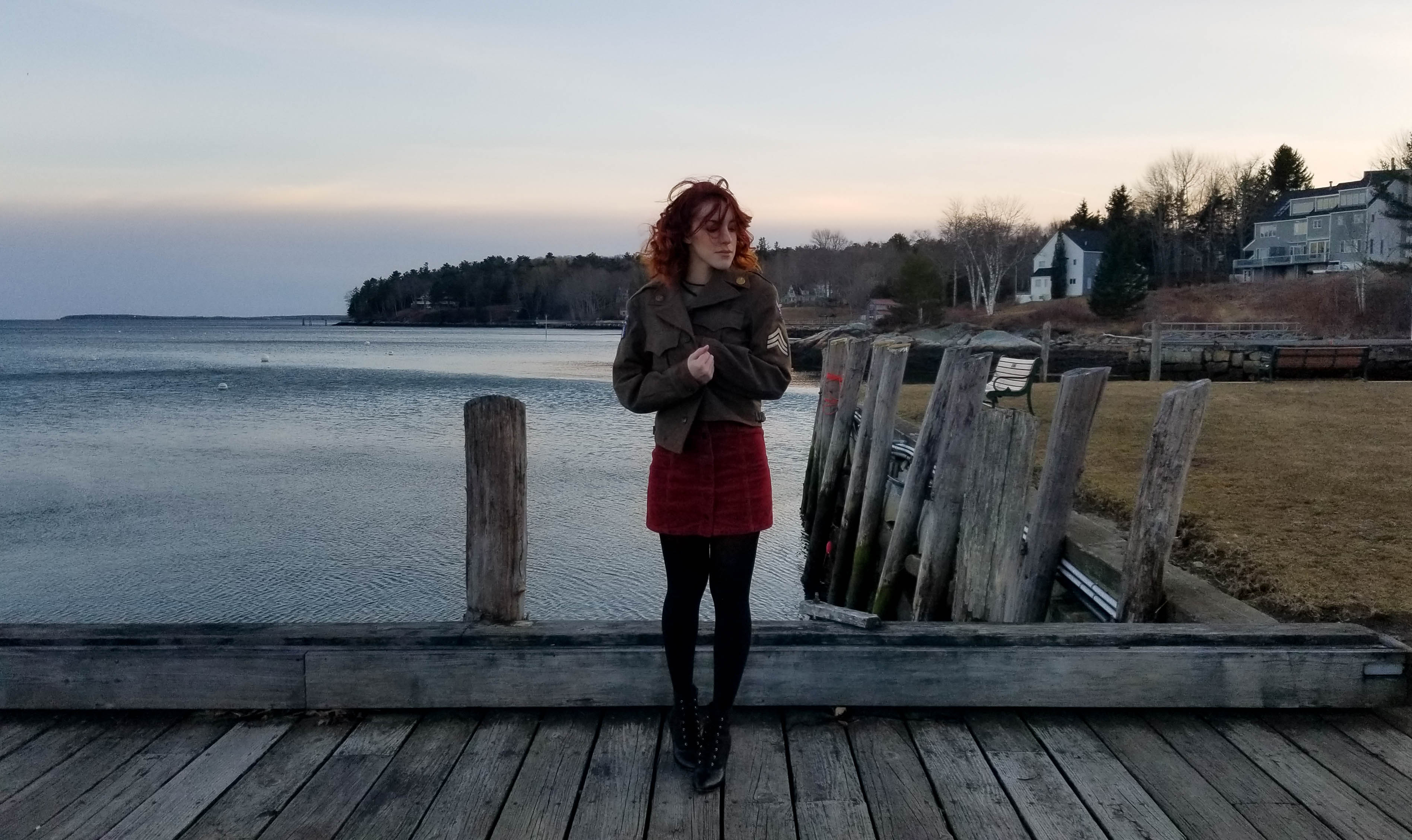 Outfit Details: Airforce Coat (Vintage) Shirt (Target) Skirt (TJmaxx) From the Same Cloth Booties (Modcloth) Necklace (Amazon)