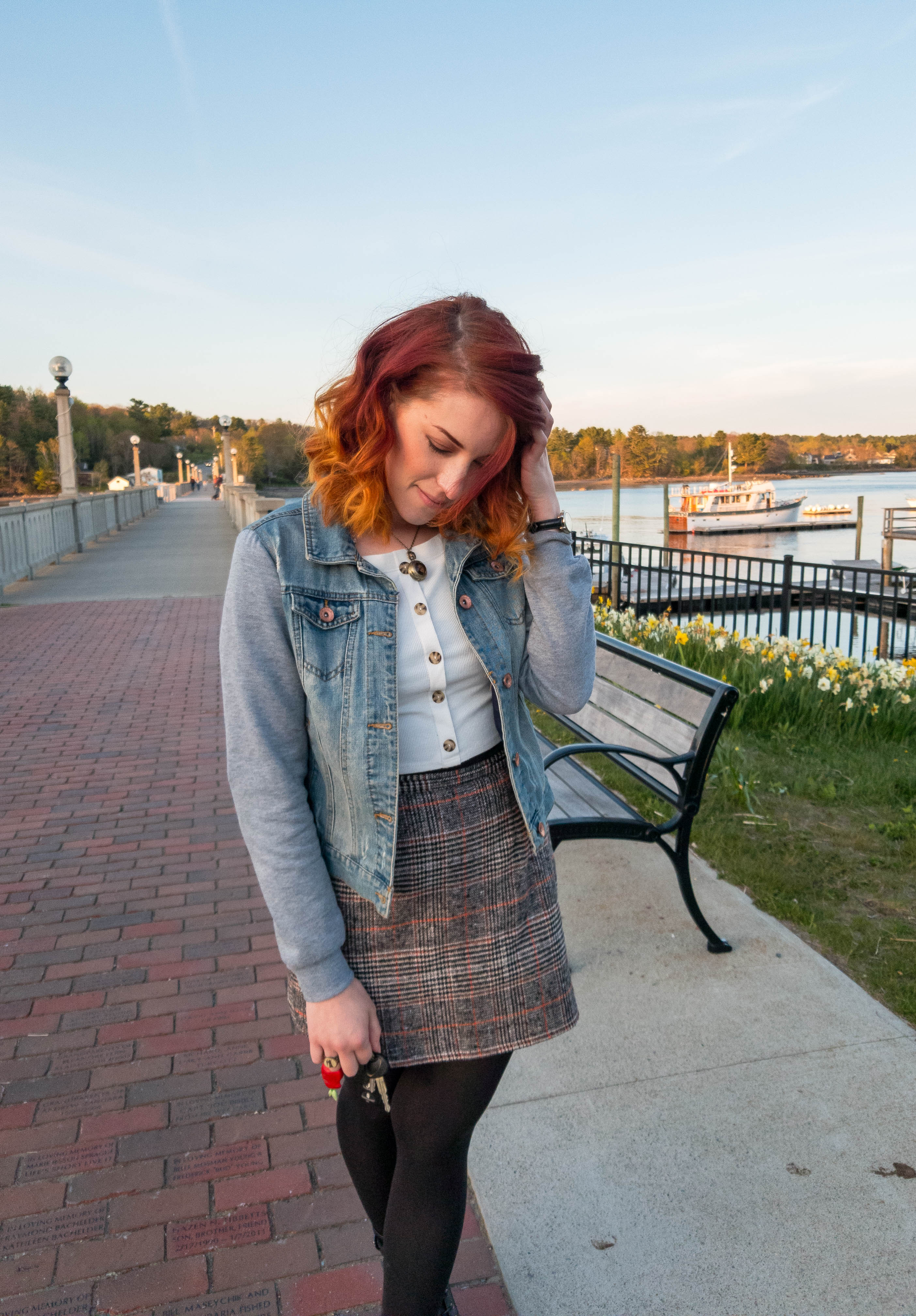 Outfit Details: Jacket & Shirt (TJmaxx) Boots (Prague) Plaid Skirt (amazon) Watch (Kohl’s) Necklace (vintage)