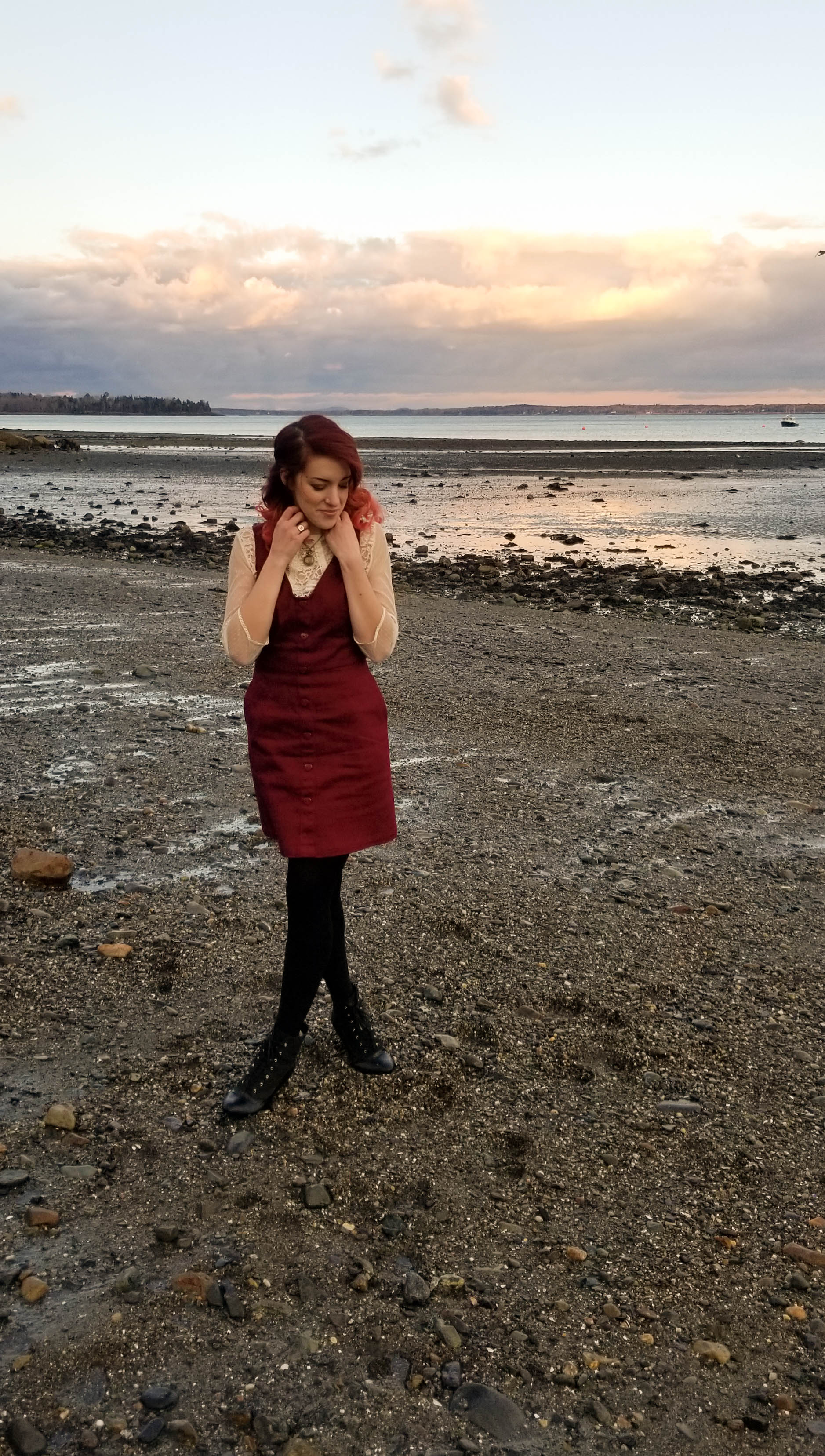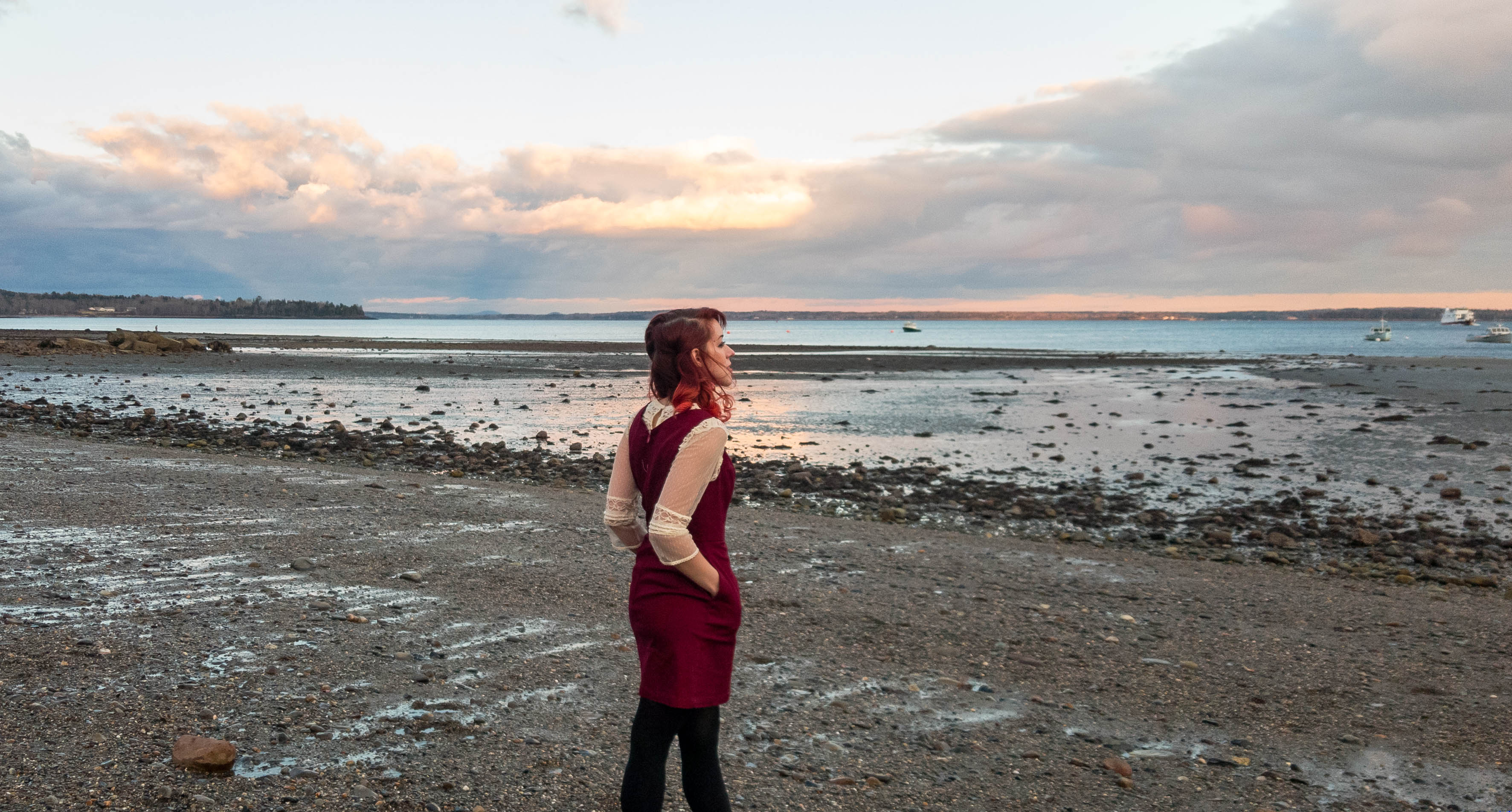 Some places become staples for my outfit pictures. Lincolnville’s beach is one of those places. In the offseason, the beach is often deserted and as the clouds mix and the sky colors, it’s an irresistible background.