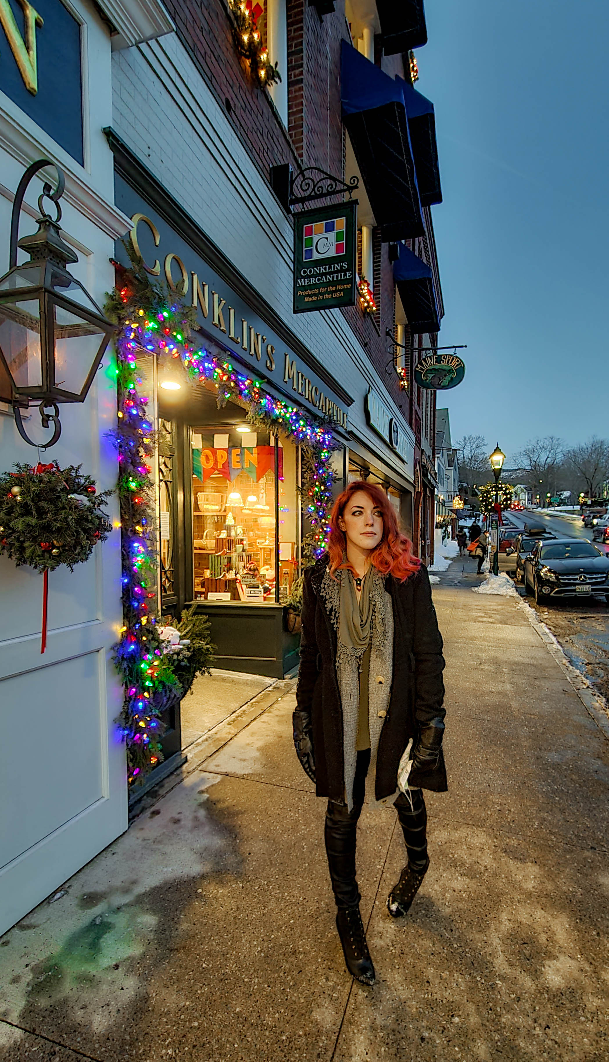 I do think I was extra brave though, I stumbled into one store and kindly asked the owner if they could turn on their Christmas lights since everything else was aglow. They did so immediately.