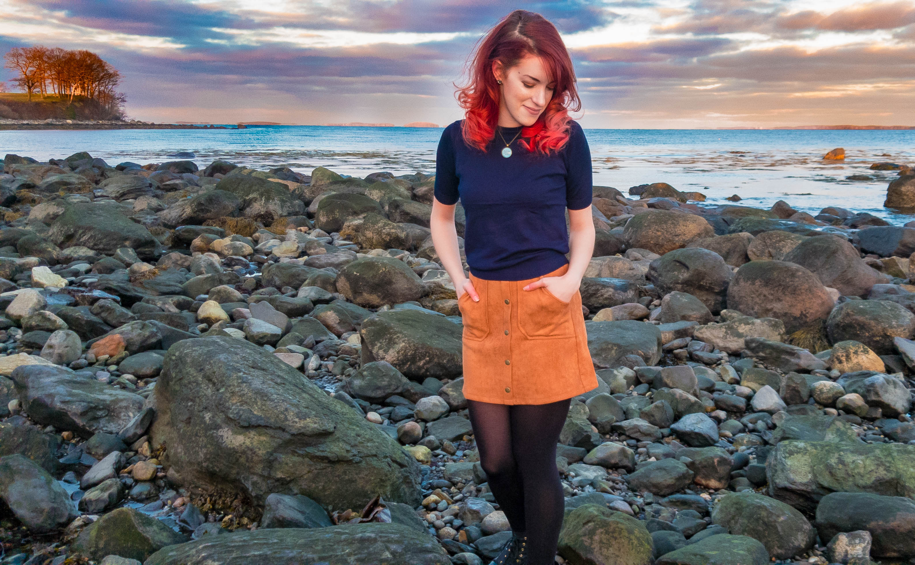 About three years ago, I lost a fair bit of weight due to health issues, I struggled fitting into most of my clothes. Skirts that were meant to sit at the waist now hung at the hips and jeans looked baggy and stretched out. I had an adorable suade skirt that no longer fit – it was just one of many skirts that weren’t wearable. I looked into altering it, but there was no good way to do it. So, last year, after I had finally accepted my smaller frame, I looked into replacing it. This is what I found . . . only this one has pockets!